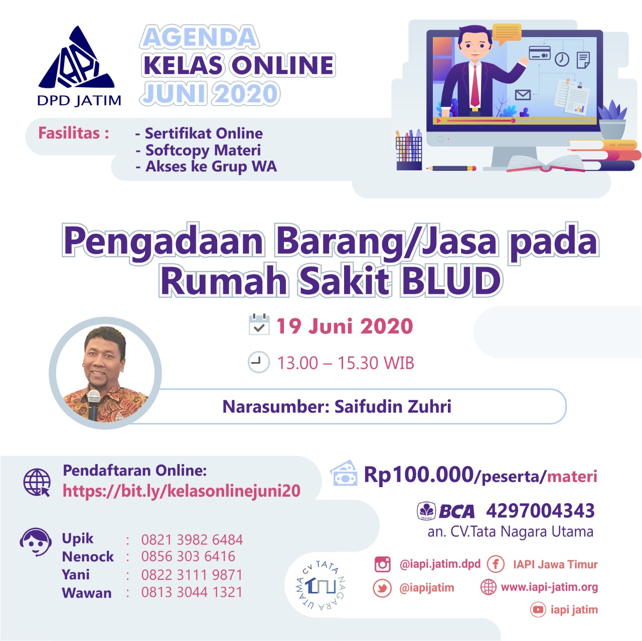 Berikut adalah informasi lengkap dari webinar pengadaan dari IAPI (Ikatan Ahli Pengadaan Indonesia) dpd Jatim.